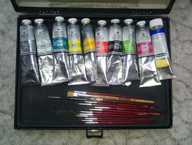 Leider sind die Farben mit 4-5 Euro pro Stück nicht gerade billig. Meistens benötigt man, um eine gewünschten Farbton anzumischen, 2 oder 3 Farben. Einige dünne Pinsel in verschiedenen Stärken werden ebenfalls benötigt.